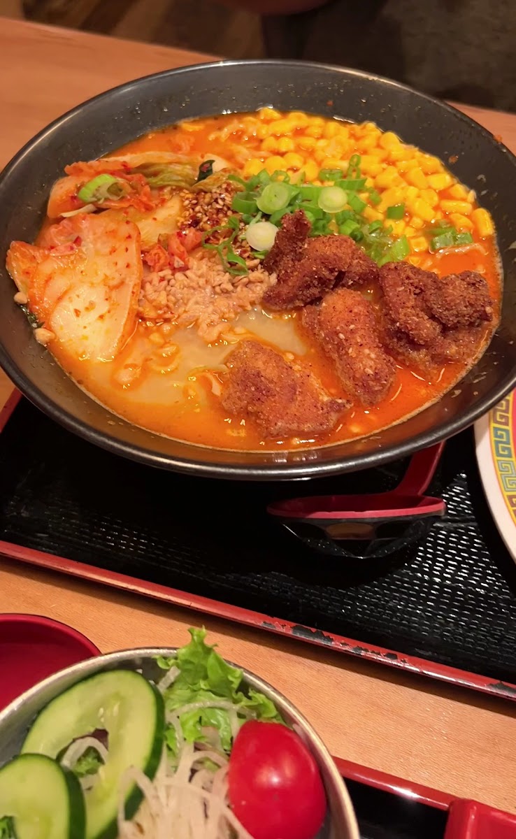 Customer reviews praise the flavorful and satisfying offerings at RAMEN-SAN, with dishes like kimchi and fried chicken ramen receiving high accolades. The ambiance of the restaurant, complete with bench seats and moody lighting, adds to the overall dining experience.