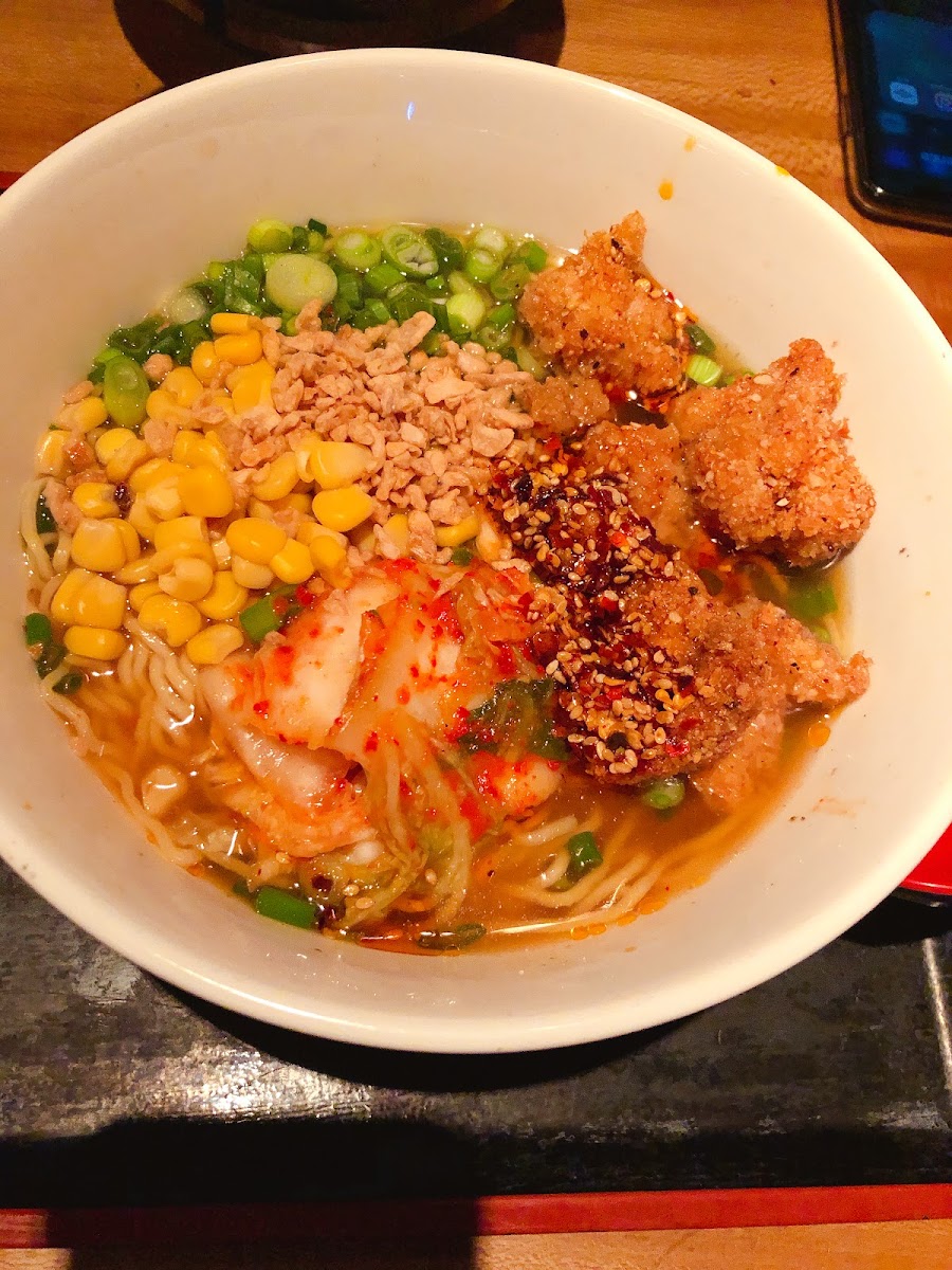 RAMEN-SAN, located in Chicago, offers a trendy and casual dining experience with a range of options for all dietary preferences, including vegan and pescatarian. The menu features delicious items like sticky Thai and spicy Szechuan chicken wings, XOXO shrimp & pork dumplings, and the popular KFC Hot Chicken late-night fried rice. Customers have raved about the flavorful broth, crispy fried chicken, and generous portions. The ambiance is hipster and lively, making it a great spot for groups or a casual meal. With attentive service and a unique dining atmosphere, Ramen-San is a must-visit for ramen lovers.